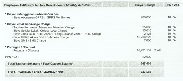 malah ada yang biaya GPRS di tagihan matrixnya di awali dengan angka 35 (dengan catatan jumlah digit sama dengan yang di billing ini)